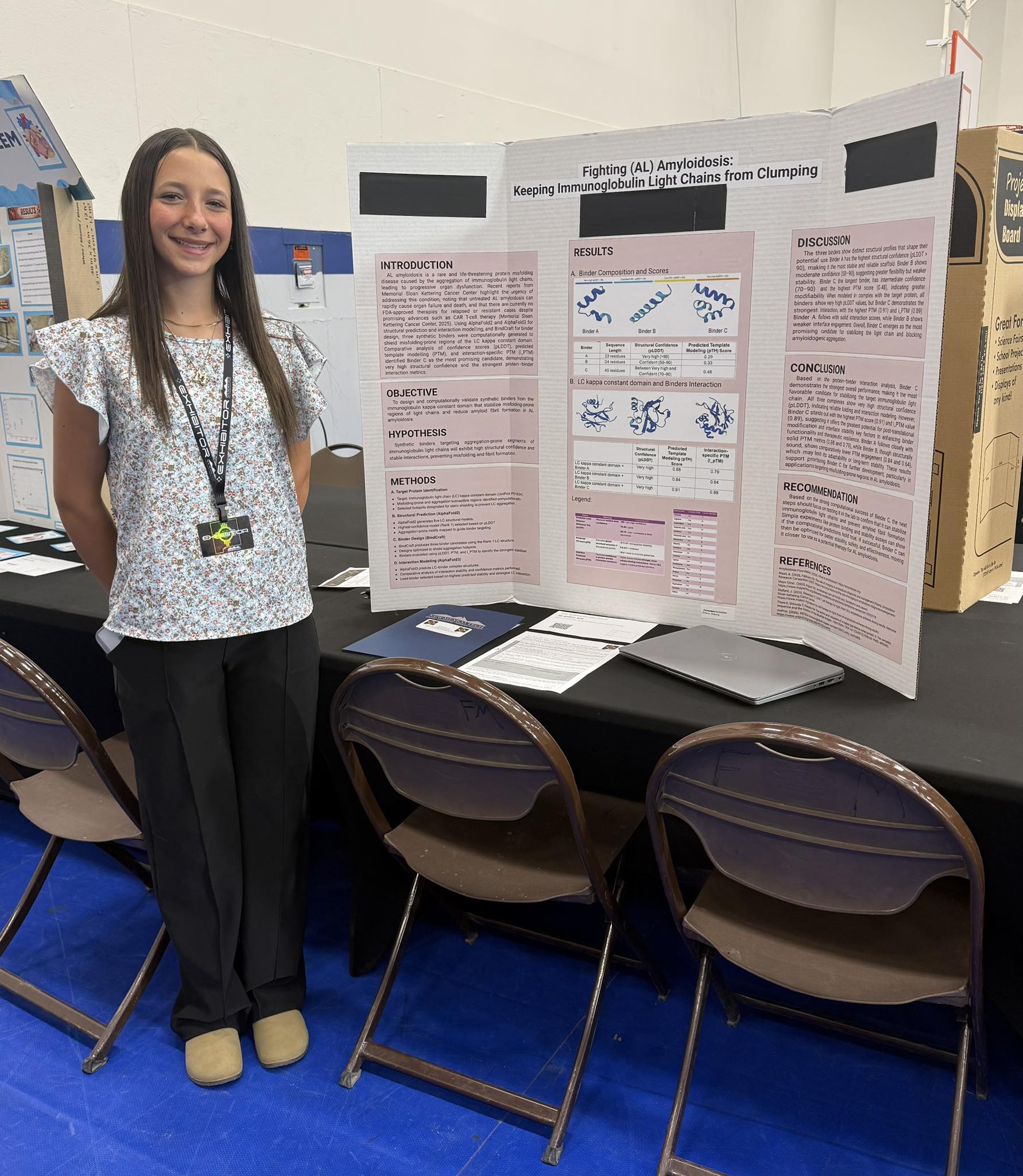Two students from Ramah Middle School competed in the 2026 New Mexico State Science and Engineering Fair in Socorro, NM. Eighth-grader Niyah Lambson took second place for her presentation on Alzheimer's research titled "Preventing Alzheimer's: Keeping Amyloid Beta Proteins Apart" in the Behavioral and Health Science category. Eighth-grader Marian Grassie took third place in the Biomedical and Health Sciences category for her presentation "Fighting Amyloidosis: Keeping Immunoglobulin Light Chains from Clumping." Both students also received a special award for CO2 and Greenhouse Gas Reduction. Congratulations to these state finalists and their research coach, Lamberto Geolin Jr., for a successful competition and for representing GMCS with excellence.
